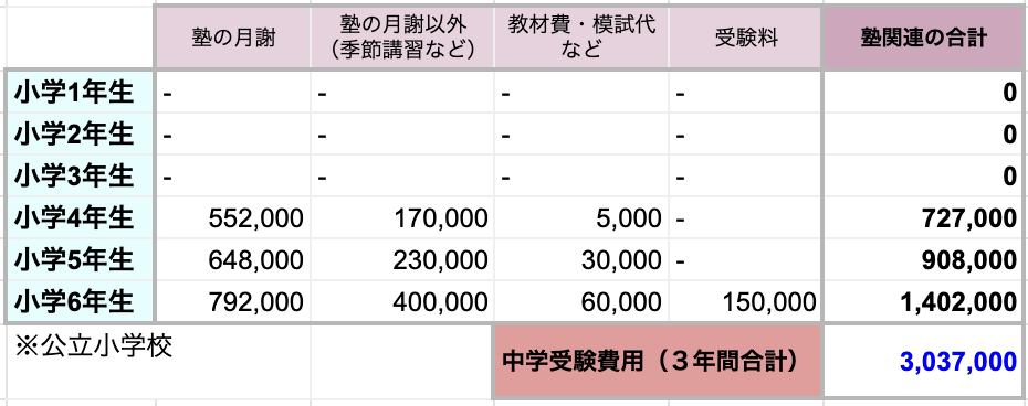 中学受験の費用。